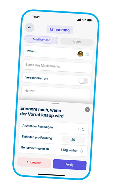 Richten Sie personalisierte Erinnerungen für Medikamente, Routinen und wichtige Aufgaben ein. Verpassen Sie nie wieder eine Dosis oder einen Termin und haben Sie die Gewissheit, dass alles erledigt ist.