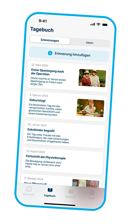 Binden Sie alle ein, indem Sie Notizen, Erinnerungen und wichtige Momente teilen. Stärken Sie die Zusammenarbeit mit einem Pflegeteam, das die Bedürfnisse Ihrer Angehörigen wirklich versteht.