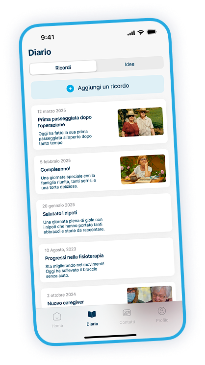 Coinvolgi tutti condividendo note, ricordi e momenti importanti. Rafforza la collaborazione con un team di caregiving che comprende davvero le esigenze della persona cara.